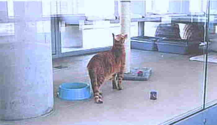 - und aussuchen zu können. Die Katze in ihrem "Glasgefängnis"