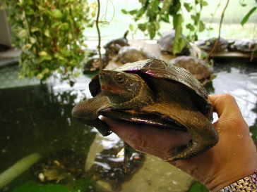 Schildkröte, die fast nur im Wasser lebt. Sie kann auch sehr gut