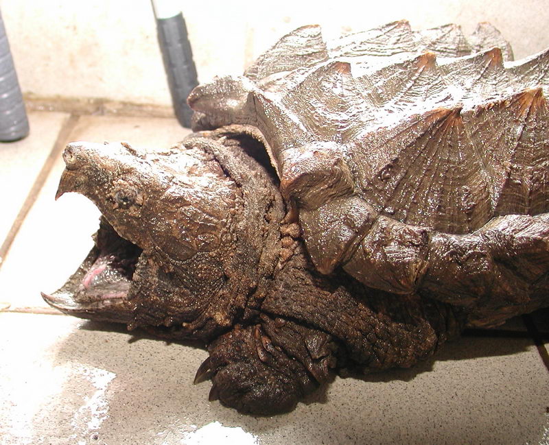 sie nah genug sind, schnappt die Geierschildkröte mit dem Maul