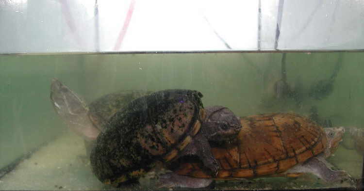 und links vorne sieht man Stenotherus odoratus, rechts vorne ist eine Kinosternon