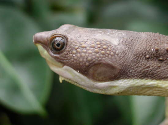 Grünliche Spitzkopfschildkröte lebt im tropischen Regenwald