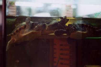 kaum ein und die Wassertiefe reicht aus, daß zwei Schildkröten