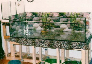 Das Aquarium ist erst zu einem Drittel gefüllt. Unten rechts erkennt
