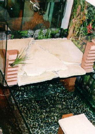 Heizkabel unter den Platten des Landteils und einer 80 W HQL-Lampe über