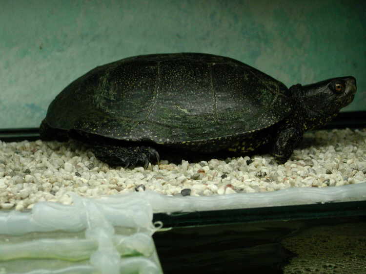 (Emys orbicularis); isst am liebsten Forelle, Sticks und hat immer Hunger,