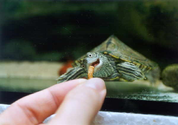 wie die meisten Wasserschildkröten Fisch, für den sie sich