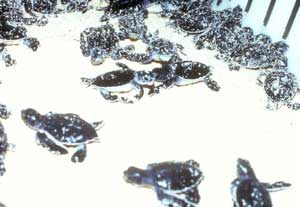 und ausgebrütet. Die Jungtiere werden nachts ins Meer gelassen, damit