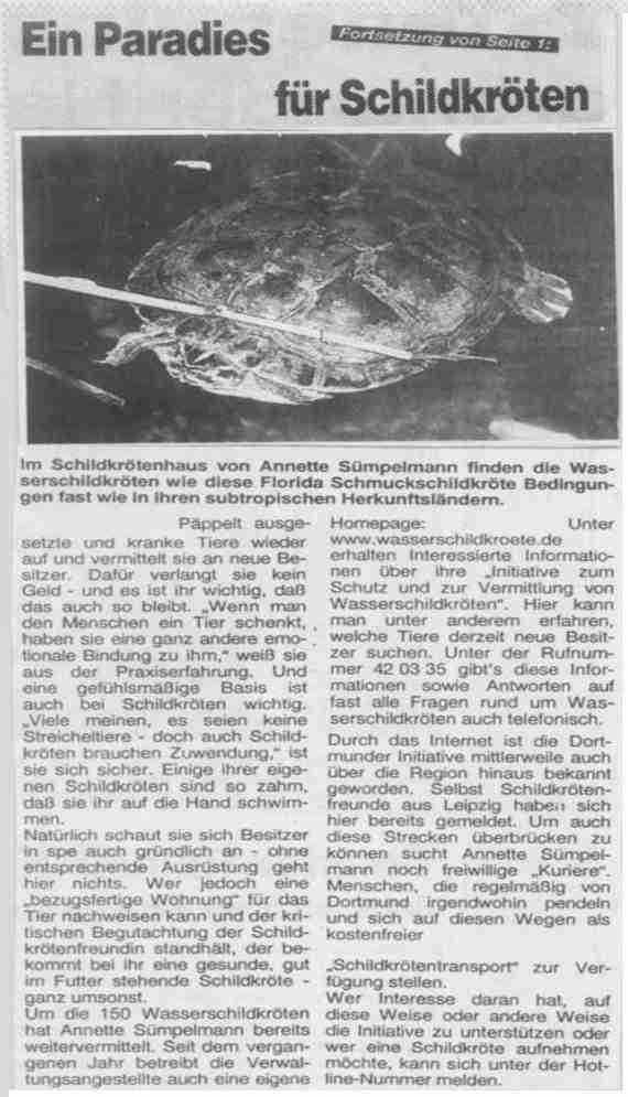 falsche Haltung der Wasserschildkröten beizutragen. Per Telefon sowie Internet-Homepage (www.wassserschildkroete.de)